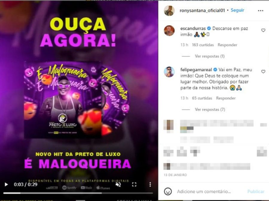 Outros artistas e fãs prestaram homenagem a Rony no perfil dele no Instagram. A banda chegou a lançar uma música nova no último dia 12.