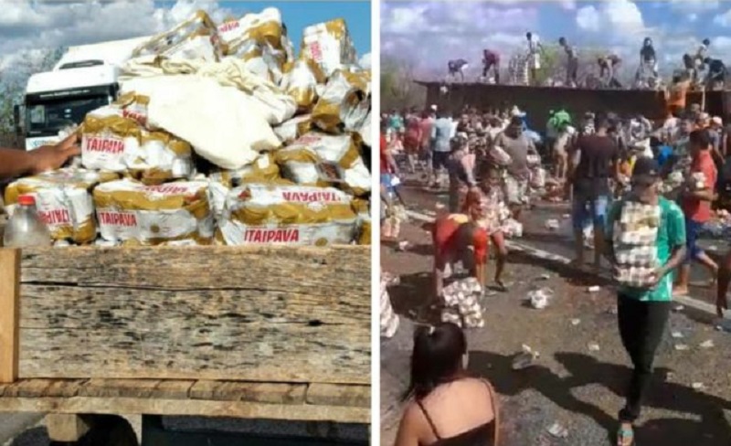 As milhares de caixas de cerveja foram saqueadas por populares e vídeos viralizaram nas redes sociais.