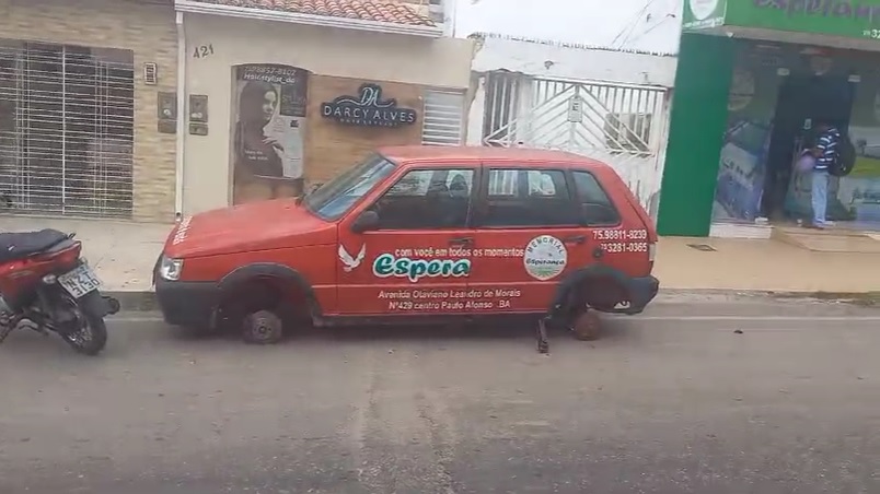 Na madrugada deste domingo (18), um carro pertencente à funerária Memorial Esperança, localizada na Rua Otaviano Leandro de Moraes, no Centro de Paulo Afonso, teve dois pneus furtados.