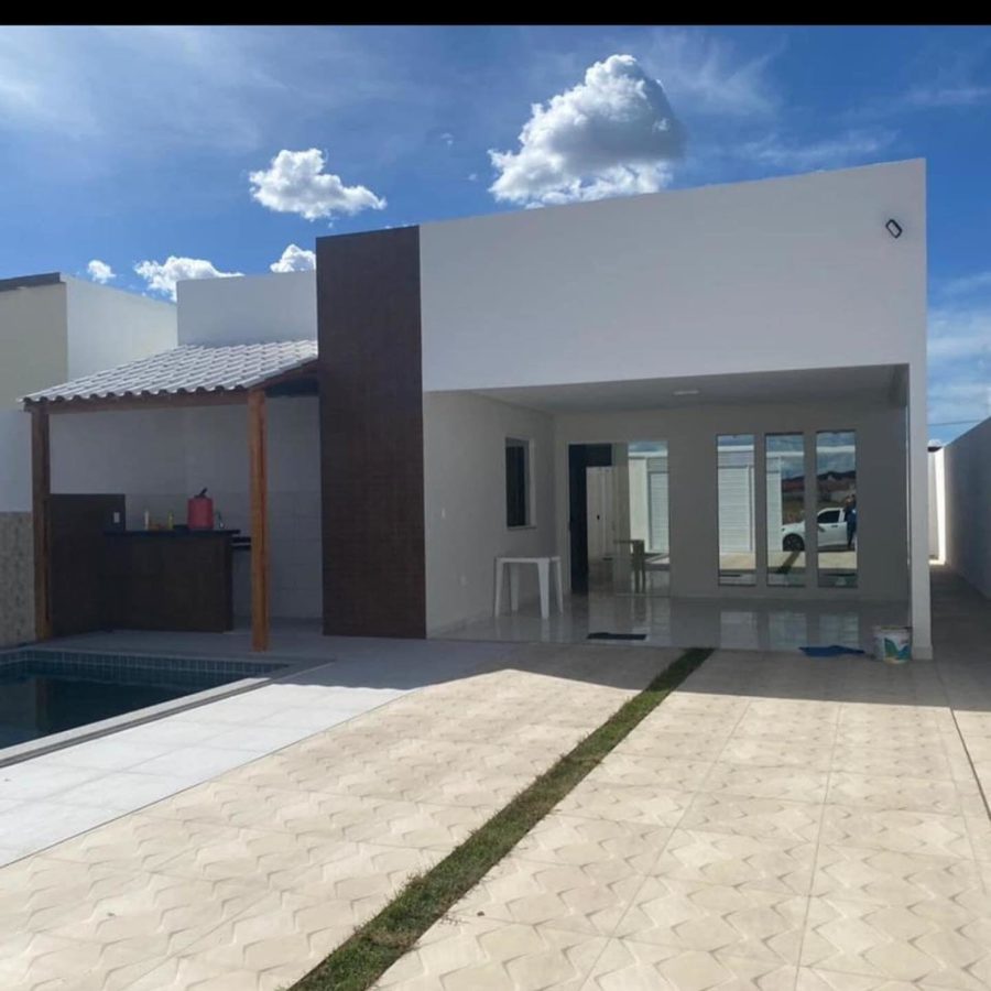 Linda casa recentemente construída, com 3 quartos, sendo 1 suíte e com closet, banheiro, área de lazer com piscina e ampla garagem. O imóvel localizado na Vila Moxotó, ao lado do Condomínio Del Rio em Paulo Afonso, é super aconchegante e arejado.