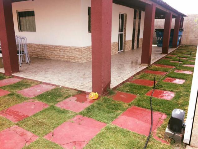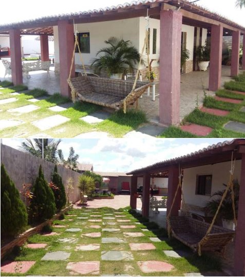 O espaço conta com casa toda mobiliada, dois quartos sendo um deles com central de ar condicionado, sala, cozinha, piscina, churrasqueira, duas geladeiras, mesas de bar, varandas com redes, jardins e ampla área de lazer.