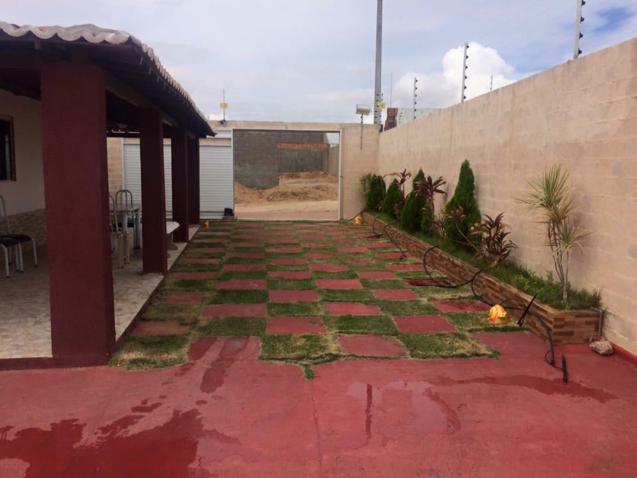 O espaço conta com casa toda mobiliada, dois quartos sendo um deles com central de ar condicionado, sala, cozinha, piscina, churrasqueira, duas geladeiras, mesas de bar, varandas com redes, jardins e ampla área de lazer.