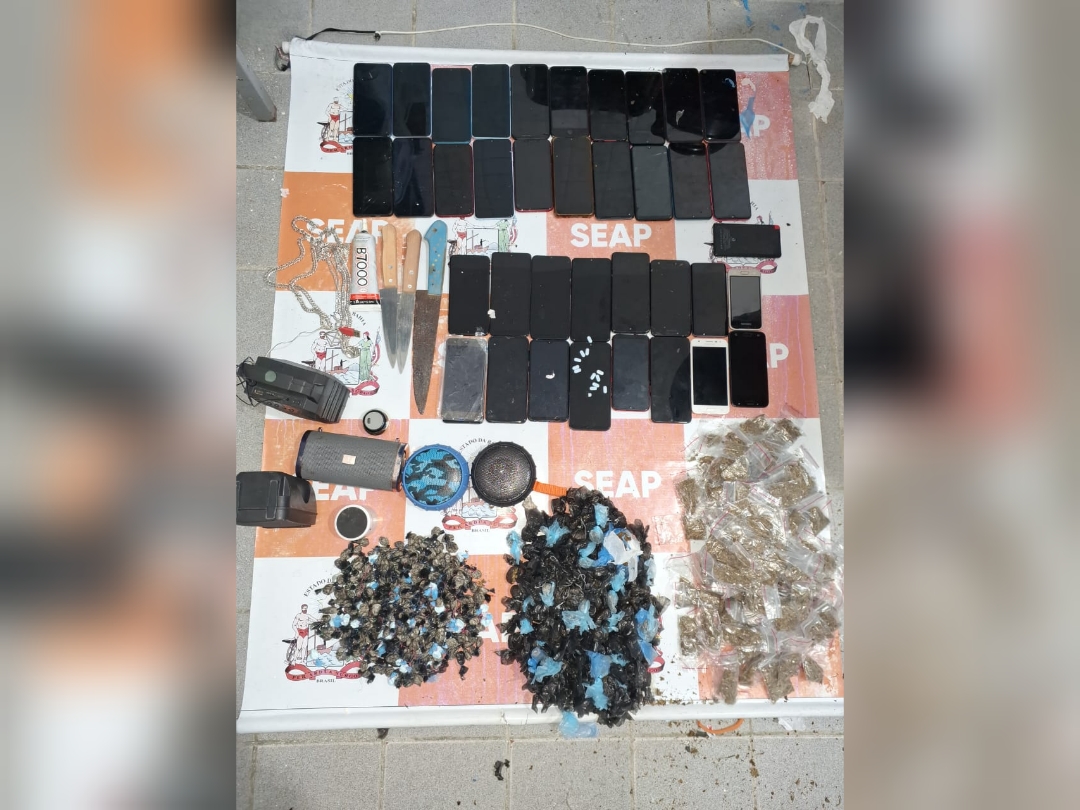 Durante a revista, uma série de materiais ilícitos e/ou proibidos foram apreendidos, destacando-se: