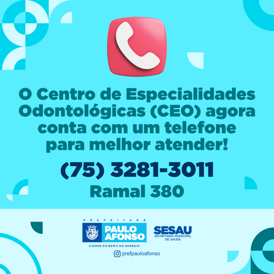 O Centro de Especialidades Odontológicas (CEO), disponibilizou uma linha telefônica para facilitar o atendimento aos usuários. O número é 3281-3011 ramal 380.