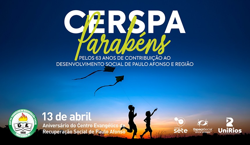 O Centro Evangélico de Recuperação Social de Paulo Afonso – CERSPA, entidade mantenedora do Colégio Sete de Setembro e do Espaço Social Sete de Setembro completa nesta terça-feira, 13 de abril, 63 anos de história como entidade pioneira em ação social e educacional em Paulo Afonso.