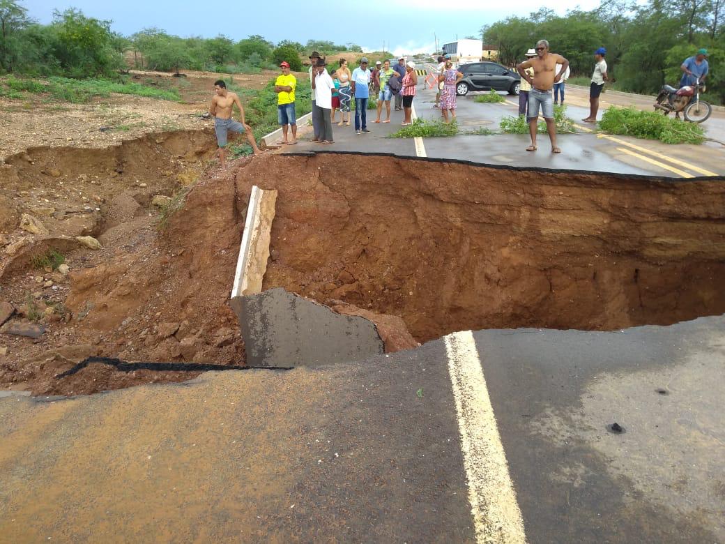 O rompimento aconteceu nas proximidades do povoado Lagoa Escondida, no trecho da via que liga Coronel João Sá a Jeremoabo, municípios da Bahia.