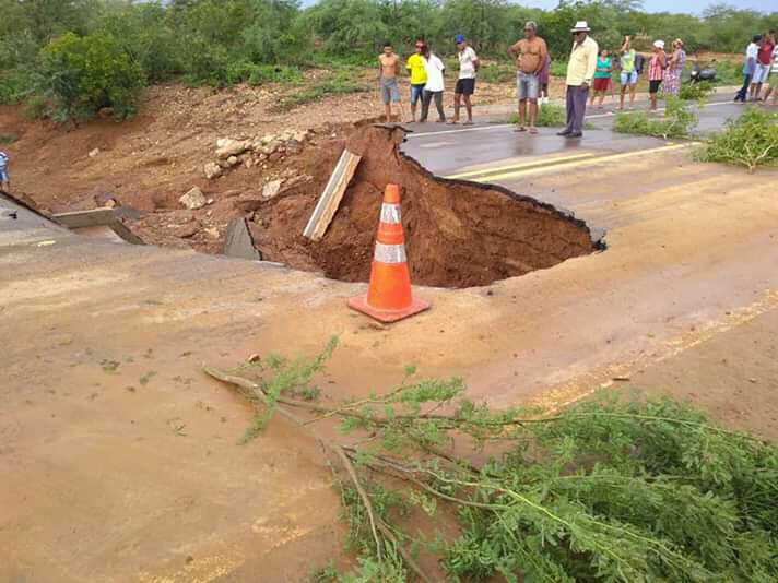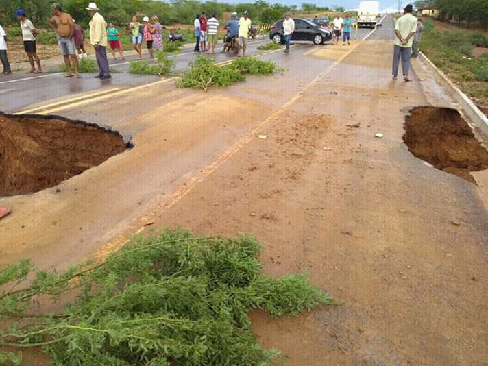 O rompimento aconteceu nas proximidades do povoado Lagoa Escondida, no trecho da via que liga Coronel João Sá a Jeremoabo, municípios da Bahia.