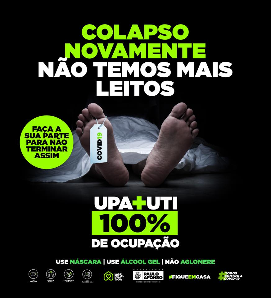 Com situação colapsada, prefeitura de Paulo Afonso usa campanha agressiva para estimular medidas contra a covid-19. Veja: