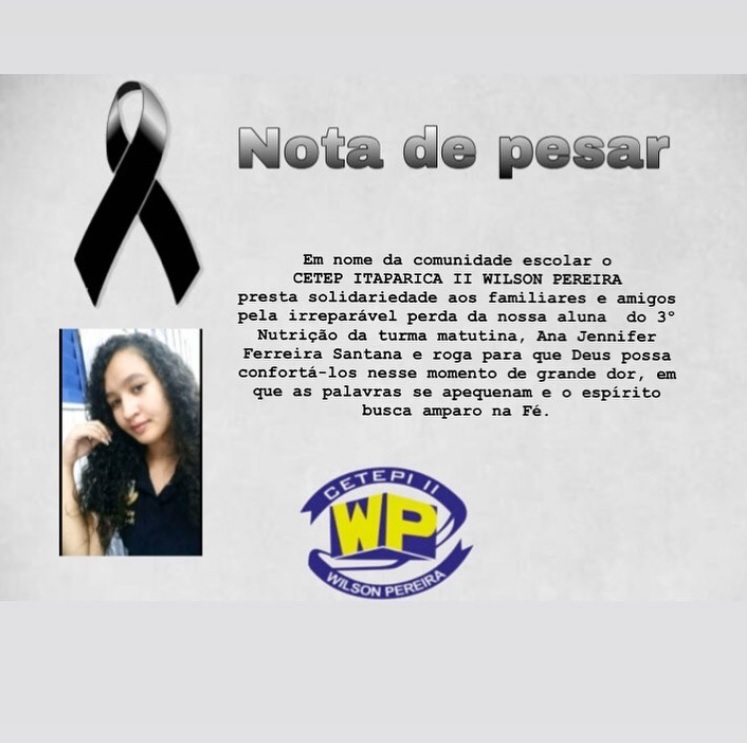 Ana Jennifer era casada e morava no BTN-1. A estudante do Cetep Itaparica 2, antigo Colégio Wilson Pereira foi homenageada nas redes sociais da unidade escolar: “Em nome da comunidade escolar o Cetep presta solidariedade aos familiares e amigos pela irreparável perda da nossa aluna do 3º Nutirção da turma matutina e roga para que Deus possa confortá-los nesse momento de grande dor, em que as palavras se apequenam e o espírito busca amparo na Fé”.