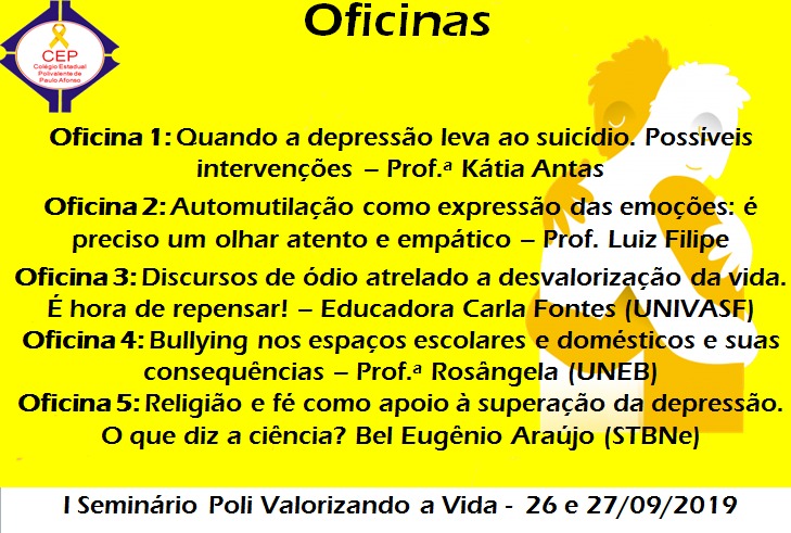 O seminário será nos dia 26 e 27 de setembro e conta com uma programação dinâmica e palestrantes maravilhosos e toda a comunidade de Paulo Afonso e região está convidada.