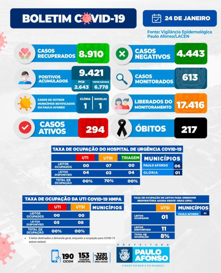 Os dados são do boletim epidemiológico divulgado no final da tarde desta segunda-feira, 24 de janeiro. Já são quase 300 casos ativos no município.
