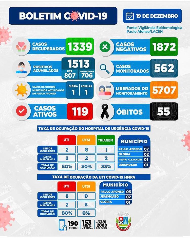 O Boletim Informativo deste sábado (19), registrou mais 17 pessoas infectadas, aumentando para 119 o número de casos ativos da Covid-19. O número de mortes se mantém estável, em 55.