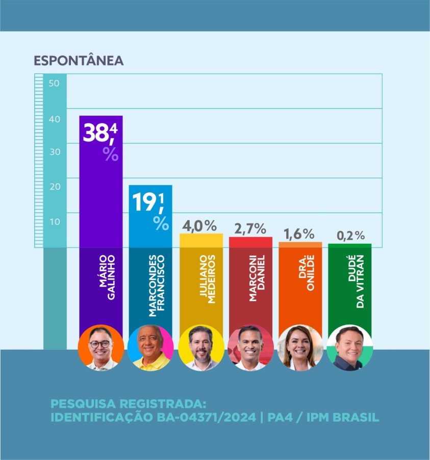O levantamento contou com uma amostra de 450 eleitores e uma margem de erro de 4,61%, sendo registrado sob o número BA-04371/2024.