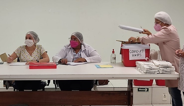 profissionais de saúde estão recebendo a 4ª dose da vacina contra a Covid-19 e a Meningocócica C. Foto: Ascom/PMPA