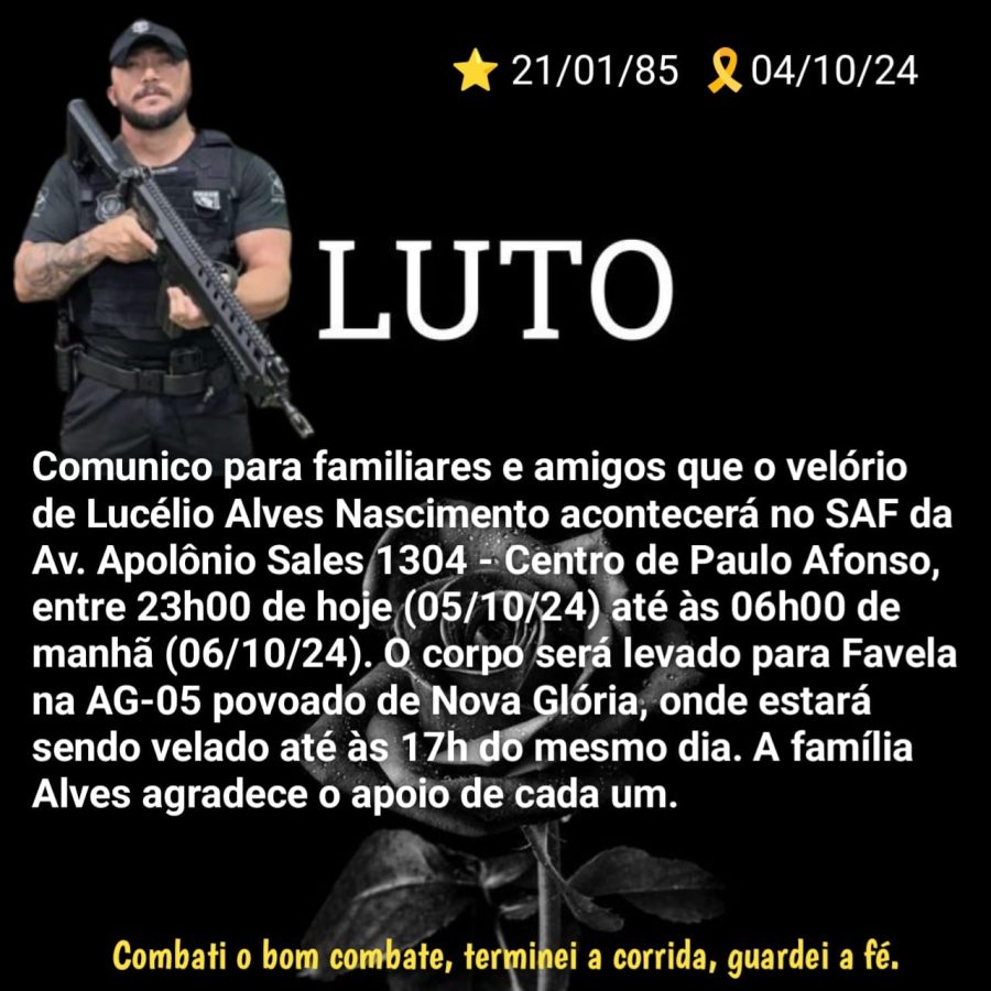 O corpo de Lucélio foi velado nas últimas horas no SAF de Paulo Afonso, e será sepultado no povoado Favela Agrovila 5, em Glória, Bahia. Até o momento, não há informações sobre qualquer condição de saúde pré-existente que pudesse ter contribuído para o ataque cardíaco. As autoridades seguem investigando para esclarecer os detalhes.