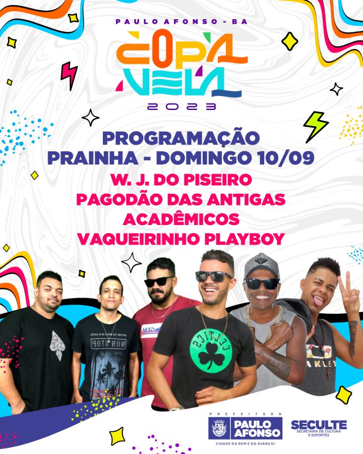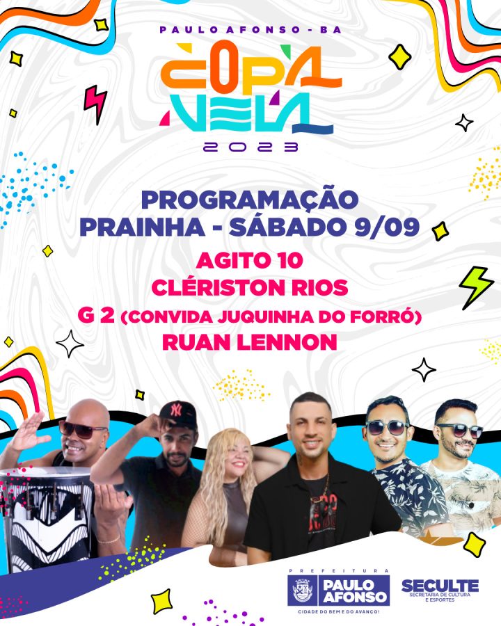 No sábado (9), a programação contará com Agito 10, Clériston Rios, G2 Convida Juquinha do Forró e Ruan Lennon. No domingo (10), será W.J. do Piseiro, Pagodão das Antigas, Acadêmicos e Vaqueirinho Playboy.