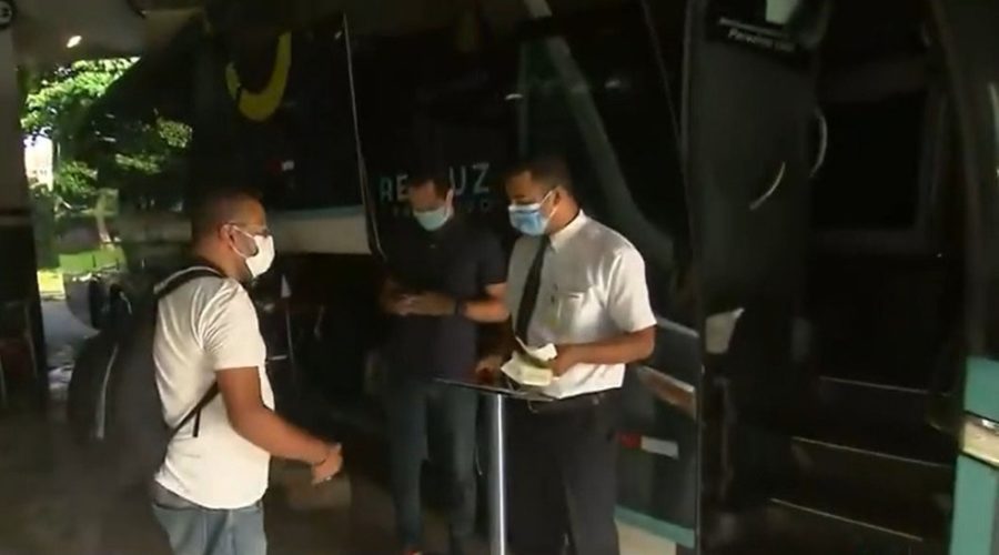 No coletivo que seguiria para a cidade de Alagoinhas, que fica a cerca de 120 km de Salvador, o motorista do ônibus falou sobre a necessidade de pedir o comprovante na hora da compra da passagem e também na entrada do veículo.