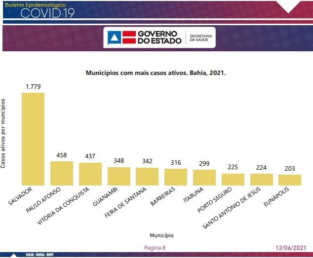 Segundo a Sesab, o atual ranking com os 10 municípios baianos com mais casos ativos da doença está assim:
