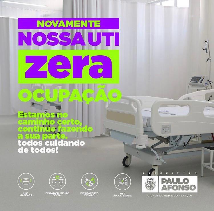 Após divulgação do Boletim Informativo desta sexta-feira (03), a Prefeitura de Paulo Afonso publicou uma nota comemorando a ausência de pacientes em todos os leitos da UTI do Hospital Municipal. É a primeira vez que isso acontece desde que as unidades foram implantadas em agosto de 2020.