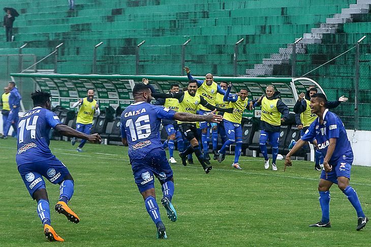 A chuva apertou em Caxias e aumentou o volume de água no já encharcado gramado. Aos 14′, Esquerdinha arriscou de longe e Frigeri espalmou, evitando o gol. Aos 19′, o Azulão abriu o placar. Pio cobrou escanteio, Jhon Cley desviou na primeira trave, guardou a bola no cantinho e saiu para comemorar. O CSA seguiu investindo no ataque quando se sentia seguro. Aos 27′, Celsinho soltou a bomba de fora e Douglas defendeu de novo.