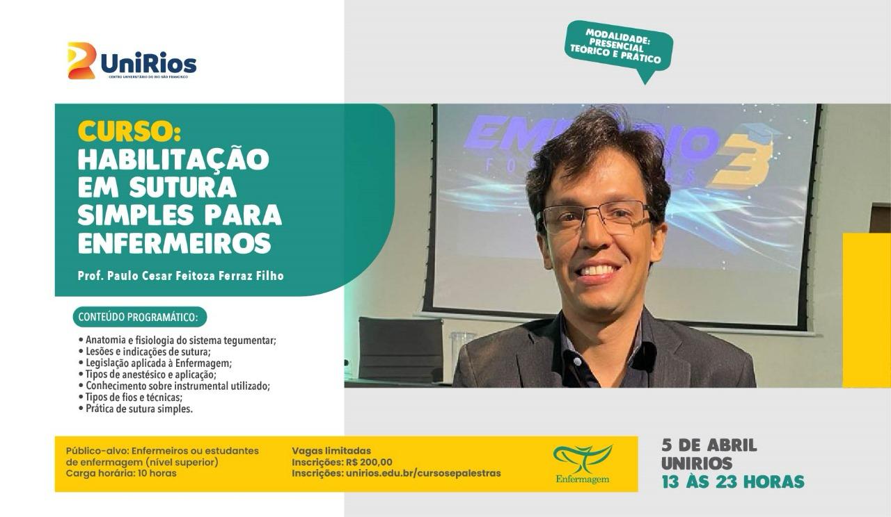 O curso de Enfermagem do UniRios, está promovendo um curso de habilidades em sutura simples especialmente desenvolvido para enfermeiros e estudantes de enfermagem de nível superior.