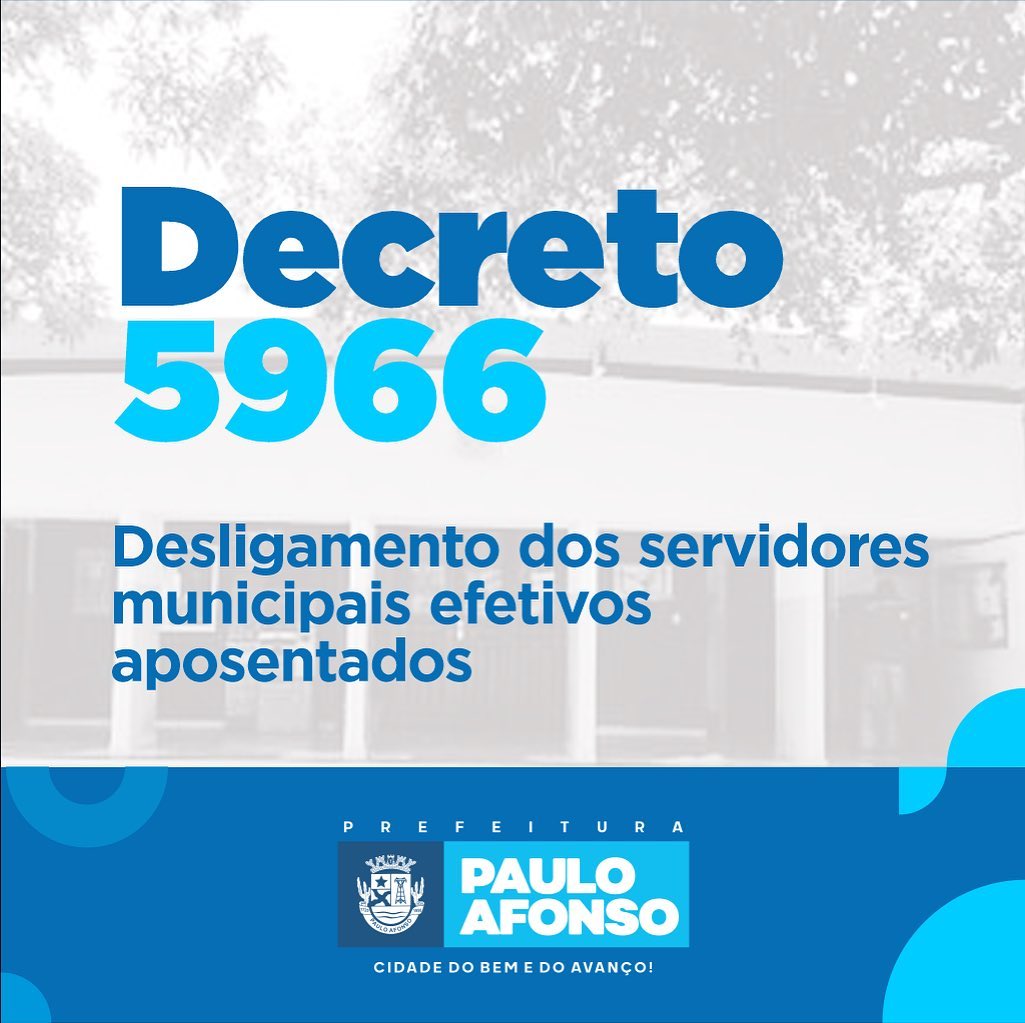 A Prefeitura de Paulo Afonso publicou o Decreto nº 5966, nesta terça-feira (6), que prevê o desligamento dos servidores municipais efetivos aposentados.