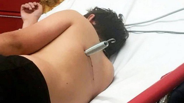Defeito em cama elástica deixa adolescente com mola cravada nas costas