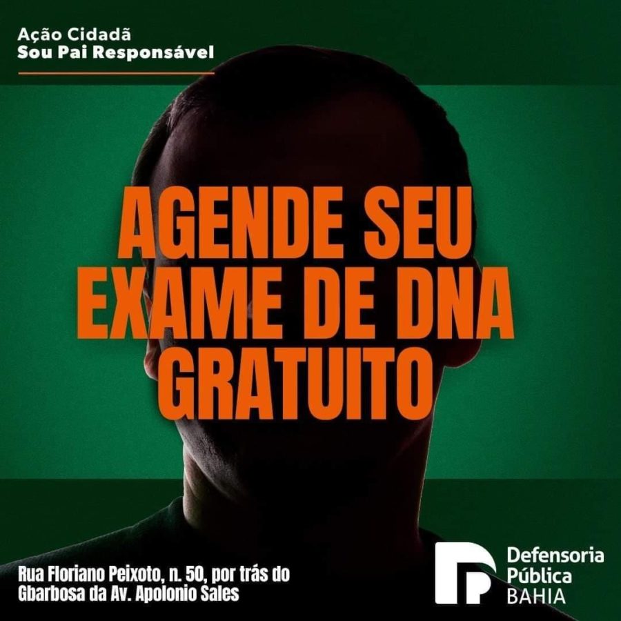 A Defensoria Pública do Estado da Bahia (DPE-BA) no município de Paulo Afonso segue com o projeto “Ação Cidadã Sou Pai Responsável”. O órgão oferece atendimento para os homens que desejam fazer teste de DNA gratuitamente, para reconhecimento de paternidade.
