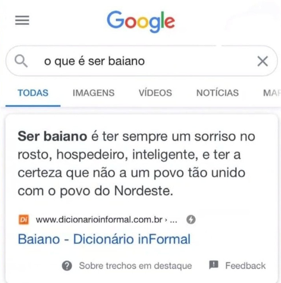 O conceito de “o que é ser baiano” na plataforma Dicionário inFormal gerou polêmica nas redes sociais durante o domingo (24). Nesta segunda-feira (25), o site alterou a definição. No entanto, influenciadores digitais da Bahia foram às redes sociais comentar o caso.
