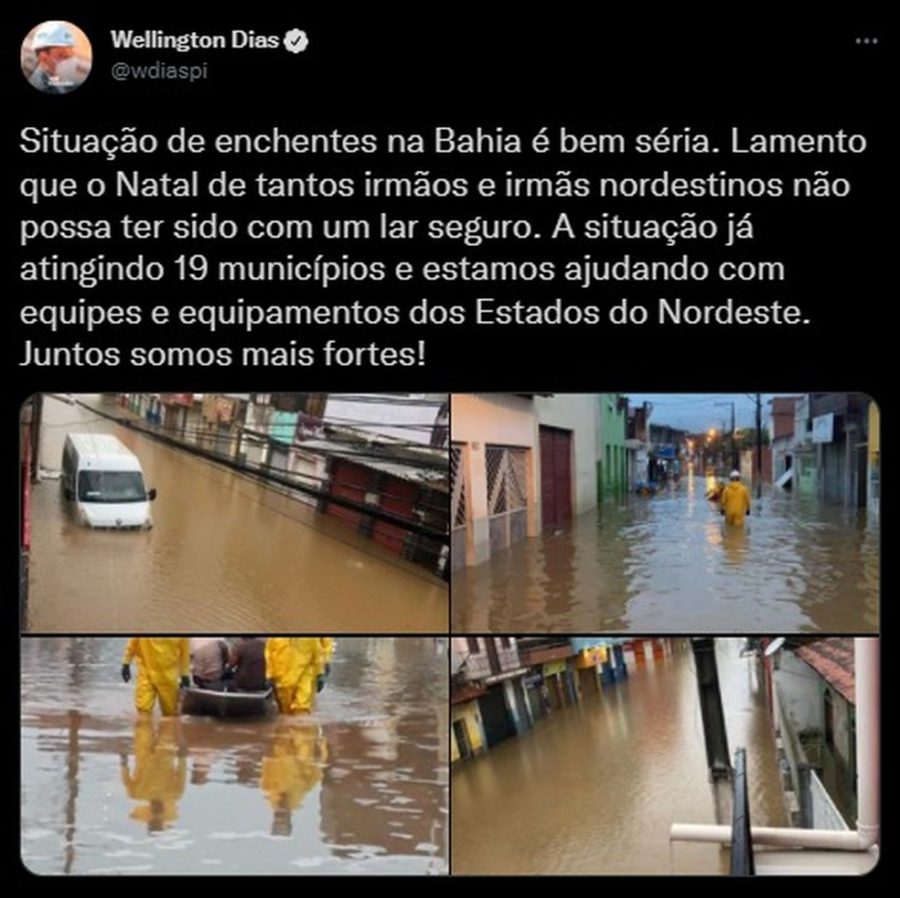 O governador Rui Costa voltou a falar, neste sábado (25), sobre as fortes chuvas que atingem quase todas as regiões da Bahia, em especial o sul, desde a última quinta-feira (23). De acordo com ele, em relação ao temporal que afetou o extremo sul no início de dezembro, a situação é pior agora, porque abrange maior número de localidades.