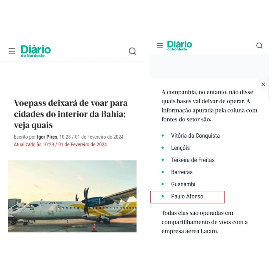 📢 Porém, de acordo com texto do Diário do Nordeste, a Voepass esclareceu que a decisão de desativar algumas operações, incluindo destinos na Bahia, a partir de abril de 2024, é motivada por razões estratégicas de reestruturação de sua malha aérea. A empresa busca adaptar-se às demandas do setor e otimizar suas operações para enfrentar os desafios em constante evolução.