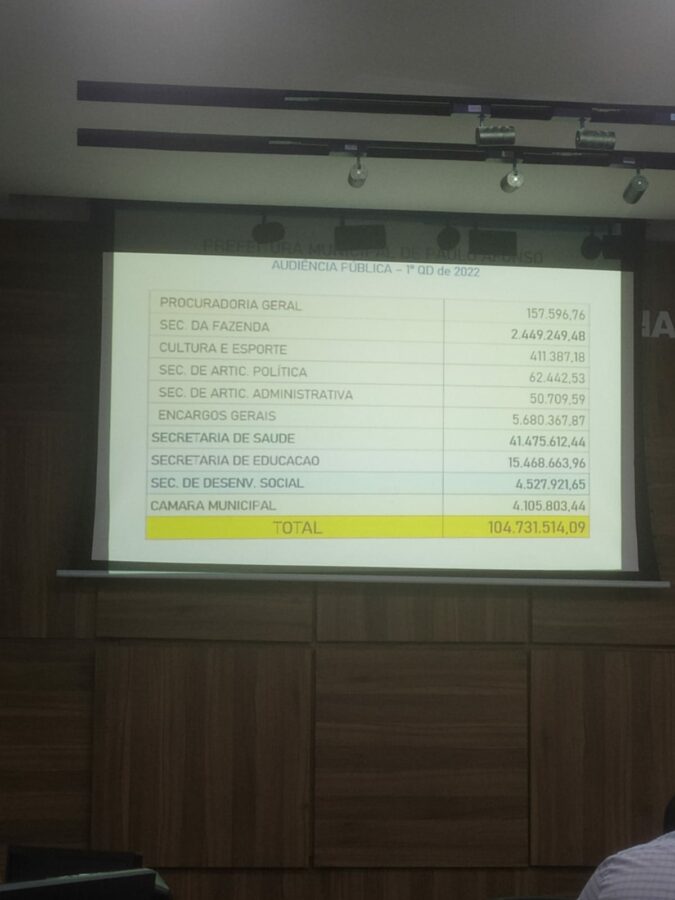 Na manhã desta sexta-feira (27), foi realizada a prestação de contas das receitas e despesas da Prefeitura de Paulo Afonso, referente ao 1º quadrimestre de 2022. A audiência, que foi apresentada pela Controladoria Geral do Município, aconteceu na Câmara Municipal de Vereadores, e foi acompanhada por populares e representantes dos poderes Executivo e Legislativo.