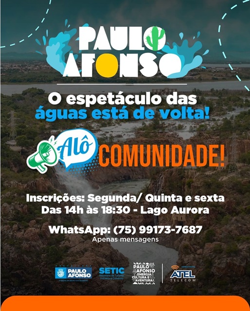 A partir desta segunda-feira (30), o pauloafonsino que desejar conhecer o Espetáculo das Águas das cachoeiras de Paulo Afonso poderá realizar a marcação para a entrada e transporte gratuitos. Este é o segundo ano da iniciativa realizada pela Prefeitura de Paulo Afonso, por meio da Secretaria de Turismo, Indústria e Comércio (Setic), com a visita até o fim do mês de fevereiro.