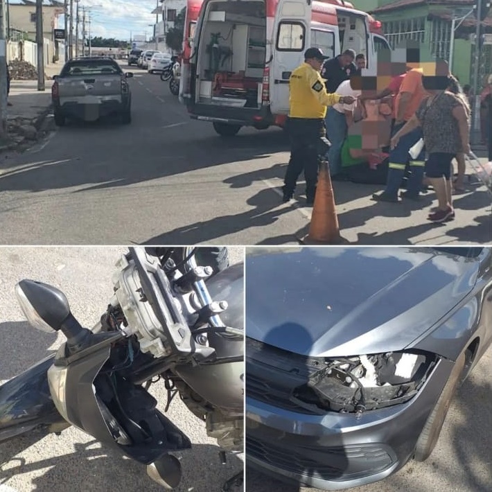 Por volta das 15h, uma colisão entre carro e motocicleta no cruzamento das ruas Monsenhor Magalhães com Noé Pires de Carvalho deixou duas vítimas feridas. O condutor da moto e a passageira foram conduzidos para a UPA pelo Samu.