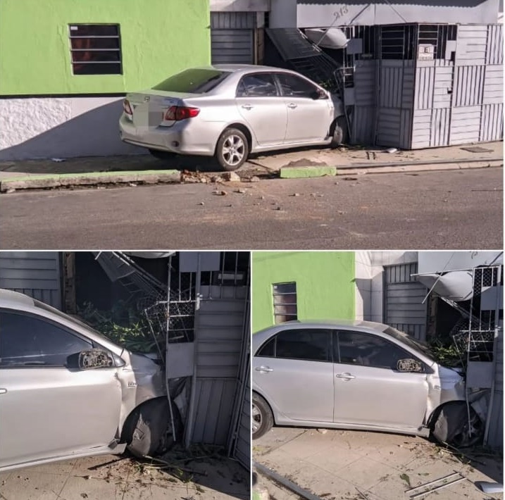 Também na tarde de hoje, o condutor de um veículo Toyota Corolla perdeu o controle e invadiu uma residência atingindo outro carro que estava na garagem, na rua Floriano Peixoto, por trás do Hotel Belvedere.