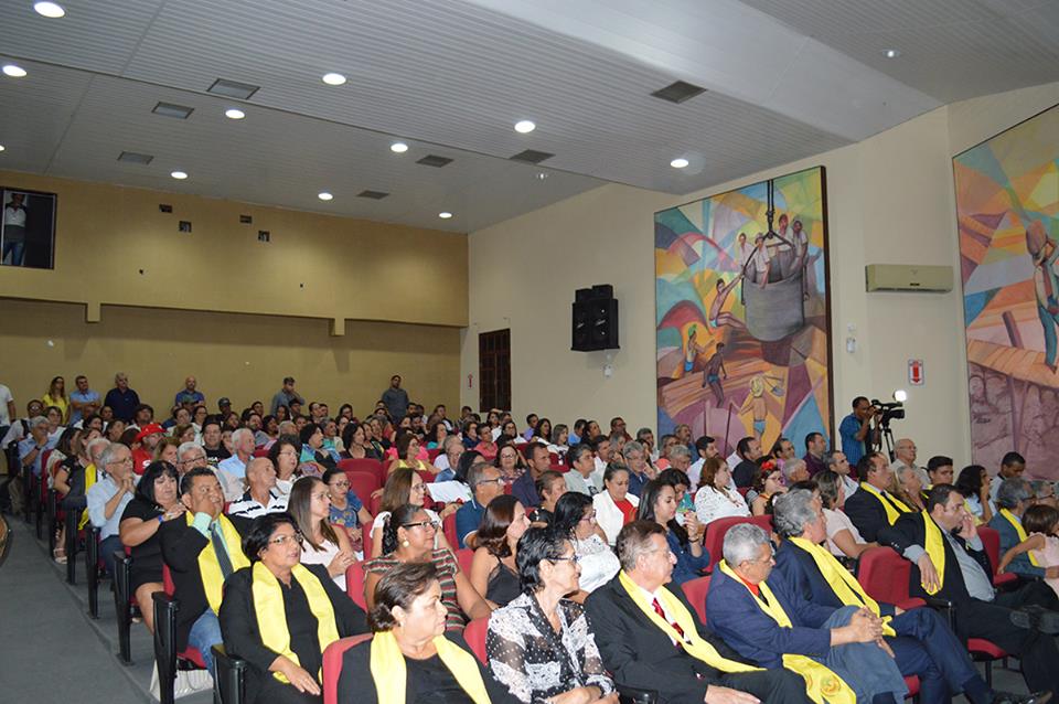 Luiz Rubem recebe da Estola da ALPA de sua esposa Ângela que também estava aniversariando, na posse de Membros Correspondentes da ALPA – Memorial Chesf Paulo Afonso, 13 de Abril de 2018. Foto: Negrito