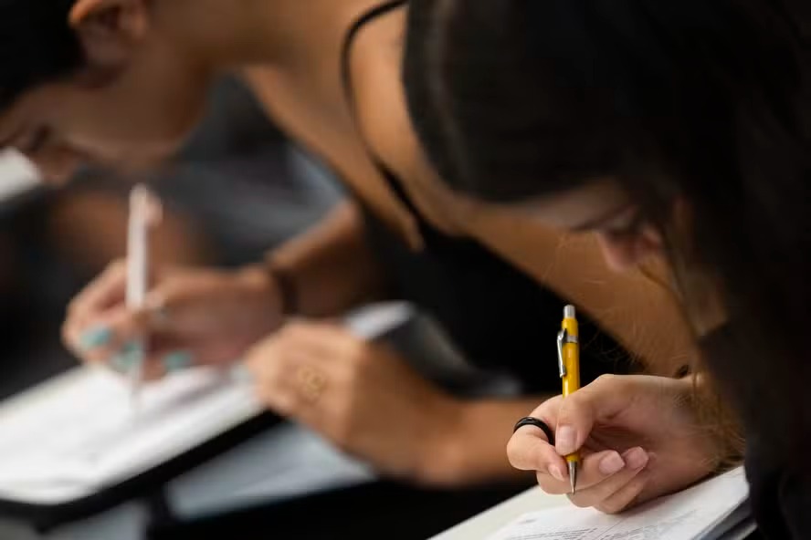 Além da redação, o primeiro dia do Enem 2024 contou com 90 questões de linguagens e ciências humanas, divididas em 40 questões de língua portuguesa e cinco de inglês ou espanhol, com início às 13h.