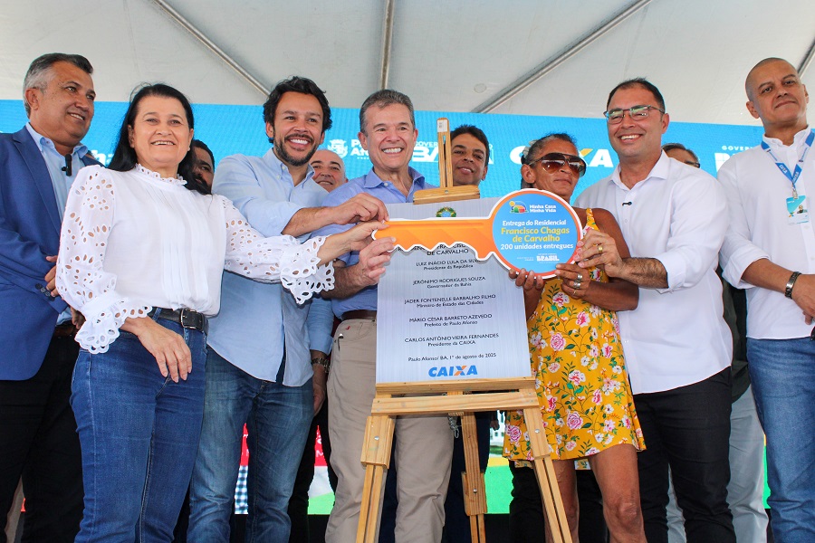 Representando o Governo Federal em solo baiano, o ministro da Pesca e Aquicultura, André de Paula, participou presencialmente da entrega das chaves aos moradores de Paulo Afonso. O evento foi transmitido ao vivo pelos canais oficiais do Governo Federal e do presidente Lula, conectando o Palácio do Planalto às cidades contempladas. Durante a cerimônia nacional em Brasília, o presidente Luiz Inácio Lula da Silva entregou simbolicamente uma das chaves à pauloafonsina Maria de Fátima de Sá, de 65 anos, que viajou à capital para representar as famílias do município.