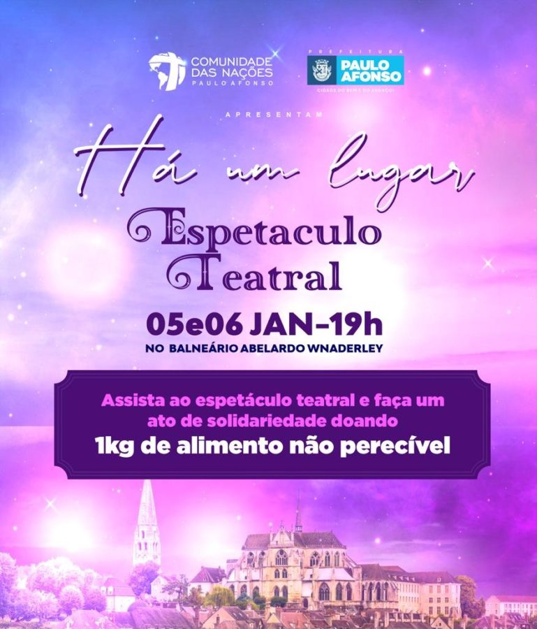 Nesta quarta (5) e quinta (6) a população poderá apreciar gratuitamente o espetáculo teatral Há um Lugar, no Balneário Abelardo Wanderley, e ainda realizar um ato de solidariedade doando 1kg de alimento não perecível.