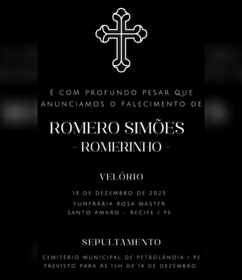 O velório de Romerinho aconteceu na Funerária Rosa Master, localizada no bairro Santo Amaro, em Recife (PE).
