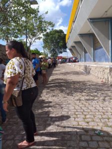 Apesar de o atendimento começar às 8h, dezenas de pessoas estão dormindo no local para não ficar com o título cancelado. Alguns chegaram a esperar mais de 15 horas para serem atendidas: “Eu cheguei às 3h da manhã e só fui liberada às 17h”, disse uma moradora do centro da cidade.