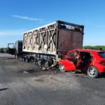 O carro onde as mesmas estavam colidiu em uma carreta que teria tido um pneu estourado e logo em seguida outro, e que posteriormente pegou fogo.