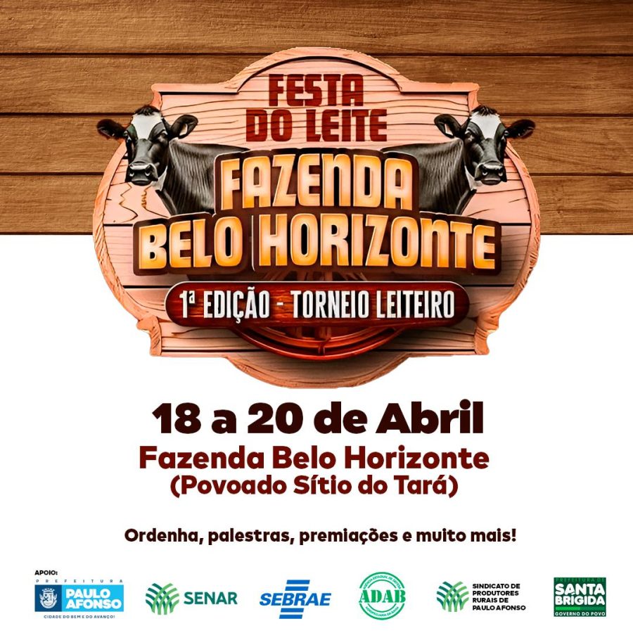 A partir desta quinta-feira (18) até o sábado (20), o povoado Sítio do Tará recebe a primeira edição da Festa do Leite e Torneio Leiteiro. O evento, que conta com o apoio da Prefeitura de Paulo Afonso, será realizado na Fazenda Belo Horizonte.