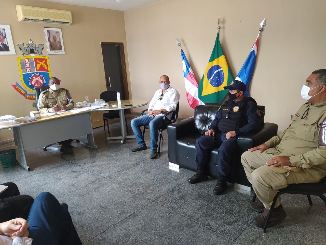 Representantes da Secretaria de Administração participaram de uma reunião no 20º Batalhão da Polícia Militar para intensificar e definir as ações realizadas para a fiscalização das medidas restritivas de enfretamento a covid-19. O encontro aconteceu na manhã desta sexta-feira (26), e objetiva o cumprimento do decreto publicado pelo Governo do Estado, com ações efetivas a partir deste sábado (27).