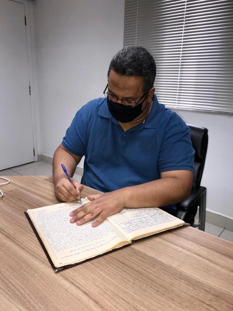 Flávio Henrique, em seu gabinete na prefeitura de Paulo Afonso, durante posse para mandato tampão, na manhã desta terça-feira, 22 de dezembro de 2020. Foto: Divulgação.