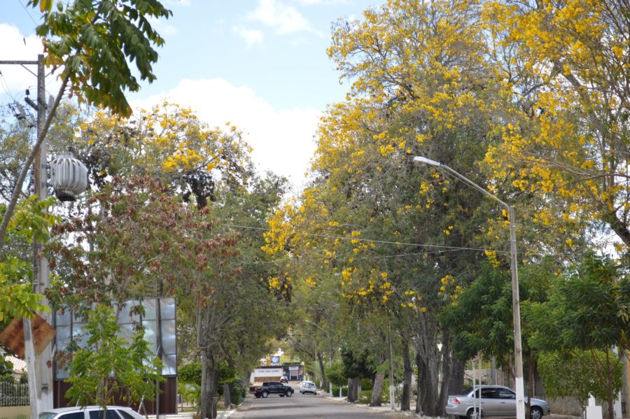 Em Paulo Afonso, as margens das estradas, dos rios, também se enfeitam do amarelo ouro da caraibeiras que, nas ruas do centro, espalham o seu ouro no asfalto negro das avenidas num contraste que dá poesia.