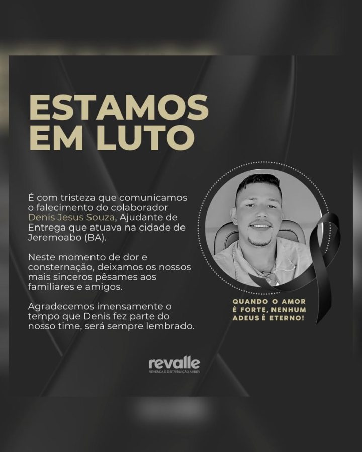 A empresa Revalle, onde Denis trabalhava, emitiu uma nota de pesar lamentando a perda do colaborador. “Agradecemos imensamente o tempo que o Denis fez parte do nosso time, será sempre lembrado”, declarou.