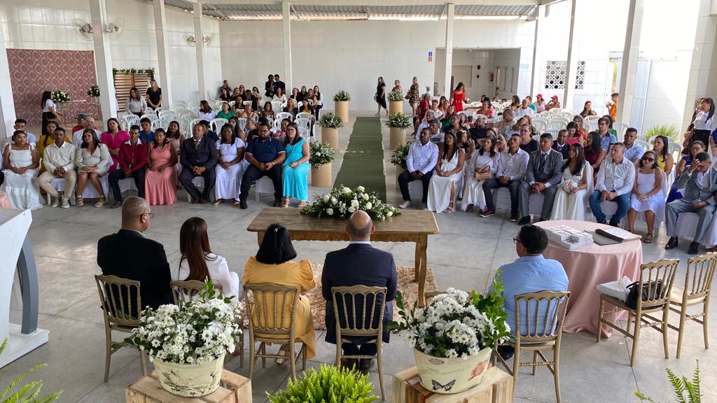 Presentes a cerimônia, além do dos casais, o Secretário de Assistência Social, Tássio Castor; a Secretária de Educação, Deusângela Campos; Marcos Bacelar, Delegado da Polícia Civil; Vereador Edmilson Afonso da Silva (Missão de Dotor); familiares e convidados.