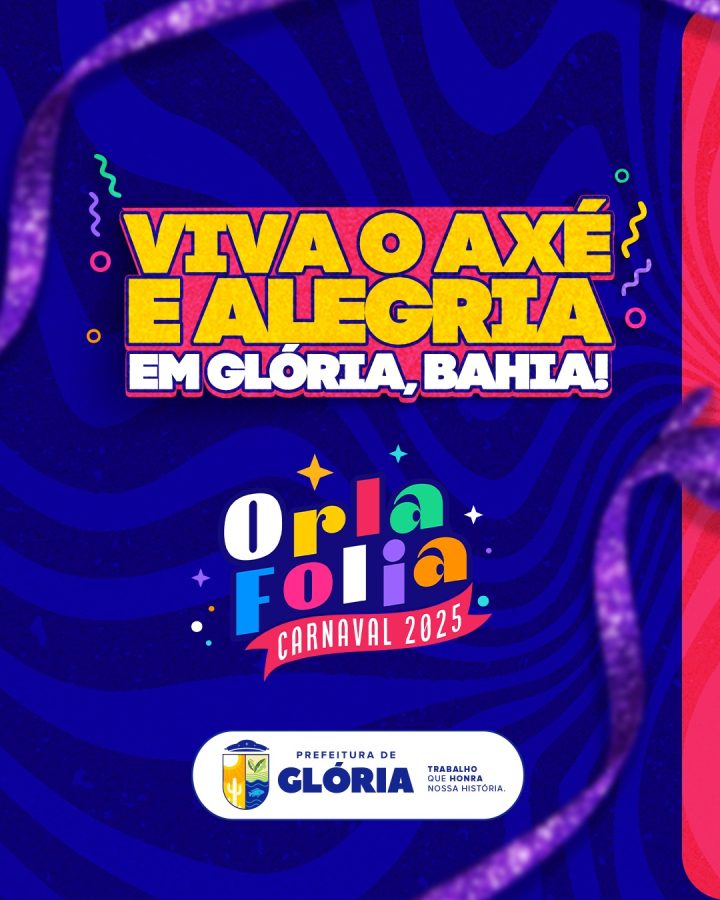 A Prefeitura Municipal de Glória, por meio da Secretaria de Governo, está pronta para realizar a primeira edição do Orla Folia na gestão municipal, trazendo o tema “Viva o Axé e a Alegria em Glória Bahia”. O evento promete muita animação, música e tradição, fortalecendo a cultura local e movimentando a economia da cidade.