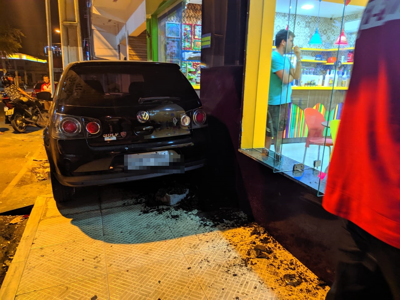 Uma das ocorrências que chamou atenção dos agentes de trânsito, aconteceu por volta da meia-noite deste domingo (20), na Avenida Getúlio Vargas. Um veículo da Volkswagen, tipo Golf de cor preta, colidiu na traseira de um Corsa que estava estacionado, subiu na calçada e parou na porta de um estabelecimento comercial após bater num poste de energia elétrica.